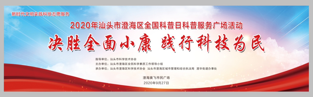 9月27日上午,澄海區全民科學素質工作領導小組組織有關部門、企業單位在澄海奧飛市民廣場舉辦2020年全國科普日科普服務廣場活動。市科協主席馬清亮,區委常委、統戰部部長林典發等領導到場指導。區委政法委、區工信局、區衛健局、區環衛局、區氣象局、區科協、區總工會、團區委、區婦聯、澄華街道和部分高新技術企業、特色農業企業、食品企業、教育機構以及科普志愿者參加了活動。